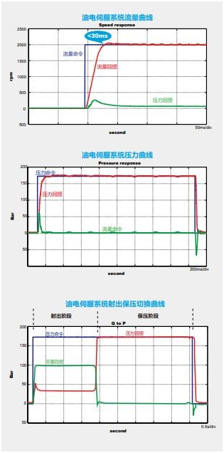 油電伺服系統(tǒng)架構 伺服驅(qū)動器從射出成型機控制器獲得壓力及流量命令后,與實際壓力和轉速回授進行PID 演算,計算出合適的控制量來驅(qū)動伺服電機與油泵,因此控制系統(tǒng)響應快、重復精度高。