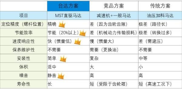品質(zhì)提升:直驅(qū)帶動(dòng)負(fù)載,無(wú)背隙、精度條件佳,準(zhǔn)確控制熔膠量