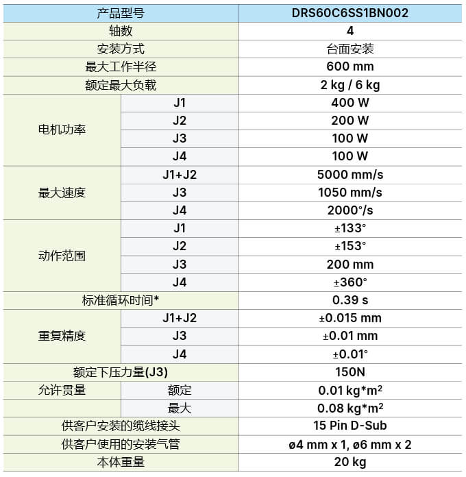 * 負載 1 kg 時,上下移動 25 mm,水平移動 300 mm,往返所需的時間。測試環(huán)境溫度 25 oC, 環(huán)境相對濕度 45% ~ 65% RH